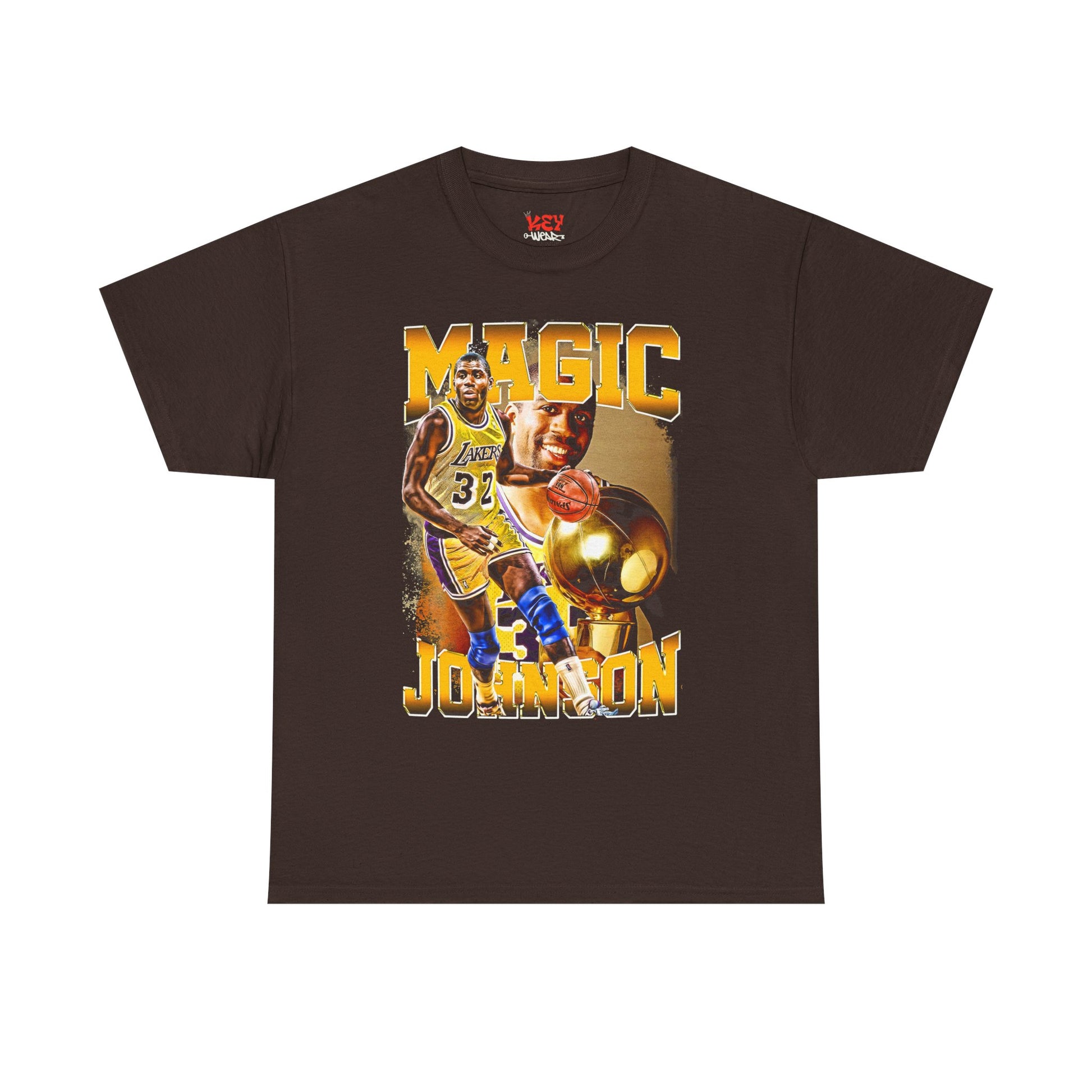 This vintage-style tee channels stadium nights and highlight-reel energy. The bold front graphic mixes action photography with gleaming gold typography for a look that reads like a championship poster. Soft, midweight cotton holds the print crisp and vivid, while the classic crew cut sits right under a jacket or hoodie. Wear it to pickup games, watch parties, or when you want to bring that competitive, nostalgic vibe into an everyday outfit. It feels lived-in without sacrificing structure — the collar retains its shape and the tubular knit keeps the silhouette clean after many washes.