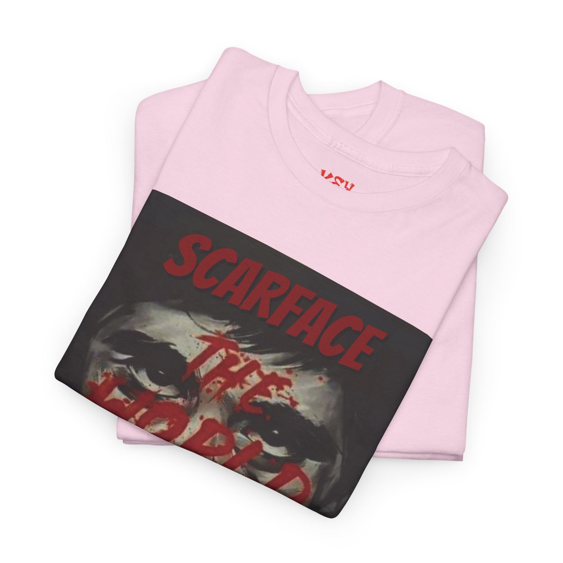 This heavyweight cotton tee carries a raw, cinematic edge — a stark portrait rendered in deep shadows with bold red script across the chest. It feels like a late-night movie poster you can wear: gritty, intense, and unapologetic. The classic crew neck and relaxed fit let the graphic take center stage while keeping the shirt comfortable for daily wear. Slip it on to add a rebellious, vintage-crime mood to a simple outfit, whether you’re layering under a leather jacket for evening shows or pairing with worn jeans for city nights.