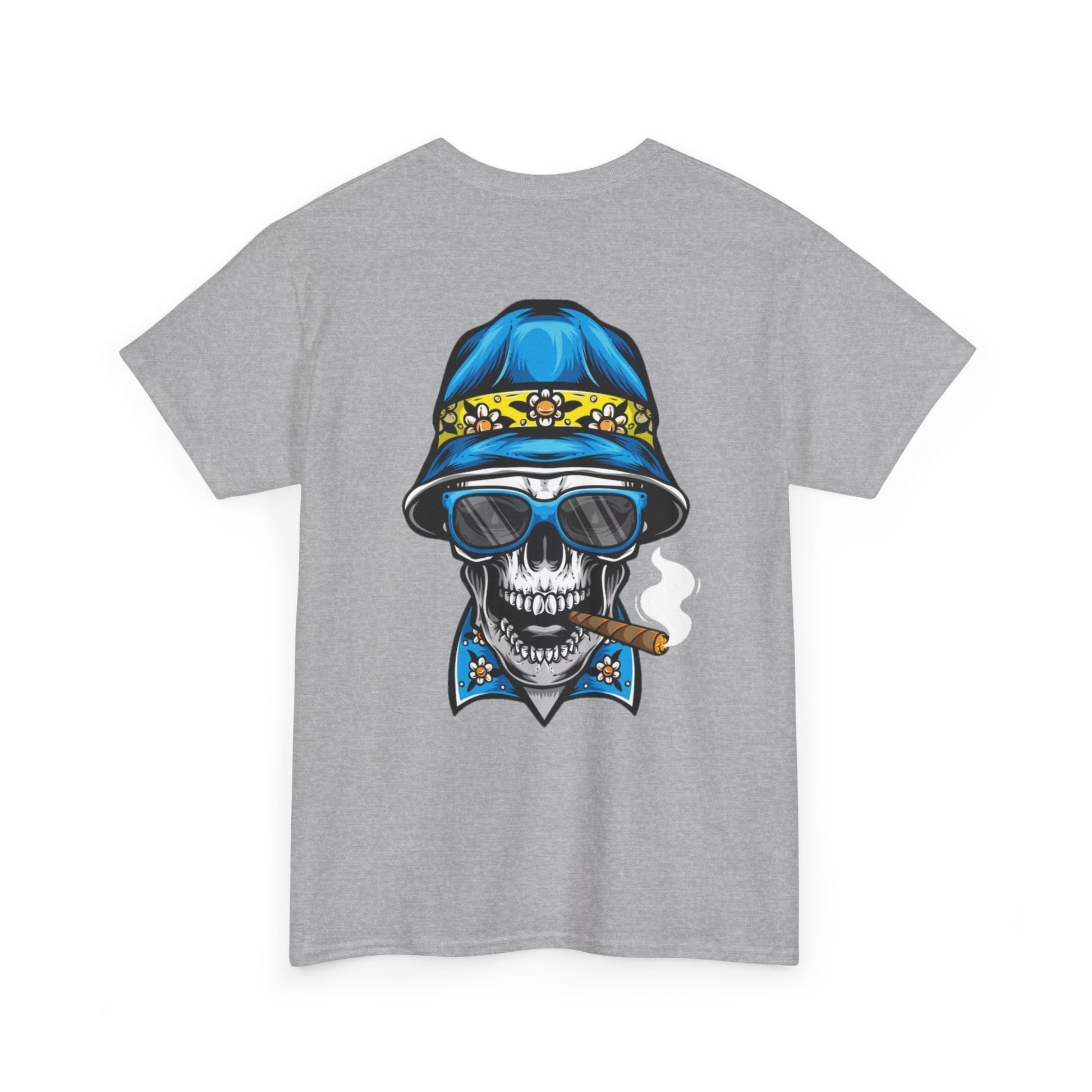 Skull Cigar Tee — Vintage Blue Bucket Hat Graphic T-Shirt